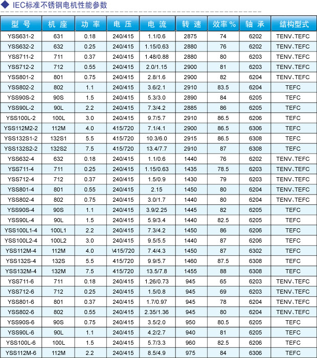 IEC標(biāo)準(zhǔn)不銹鋼電機(jī)